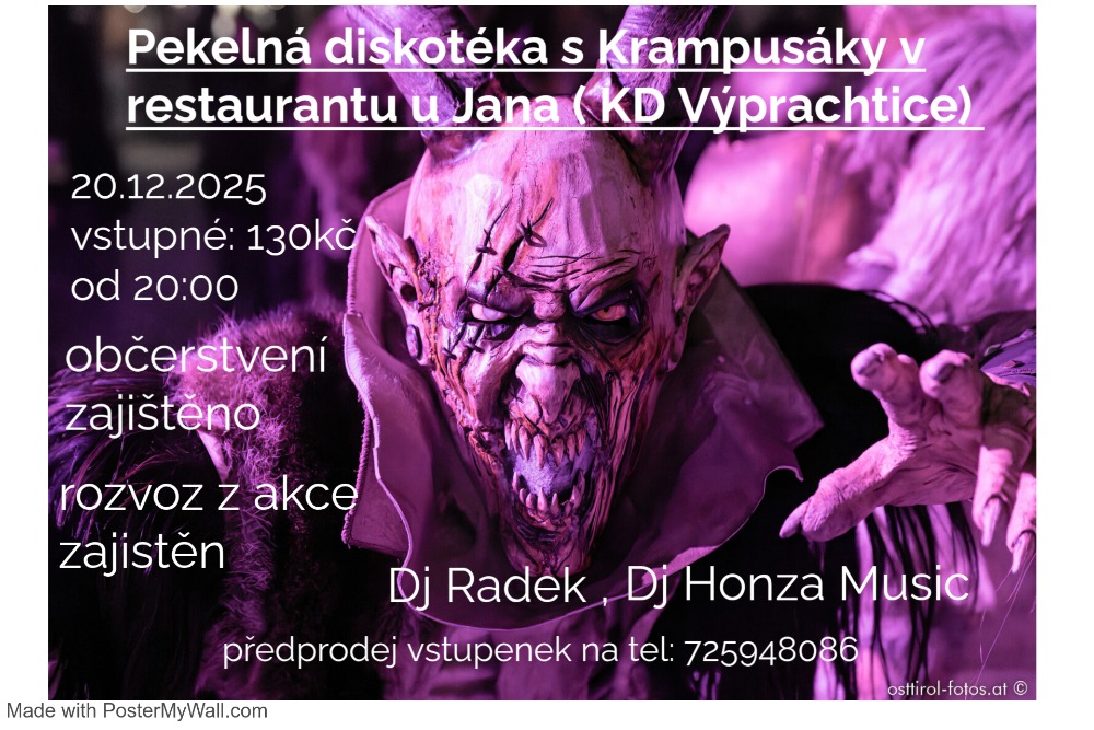 Pekelná diskotéka s krampusáky na sále Penzionu u Jana v sobotu 20.12.2025 od 20:00.