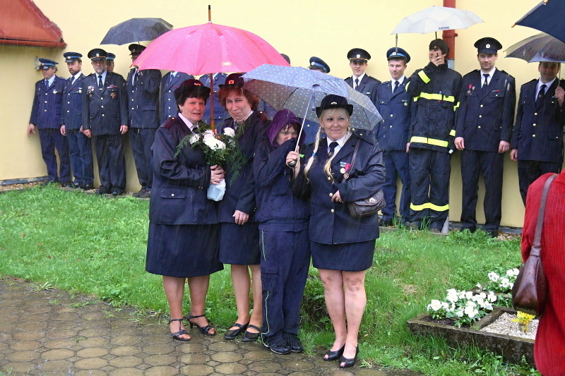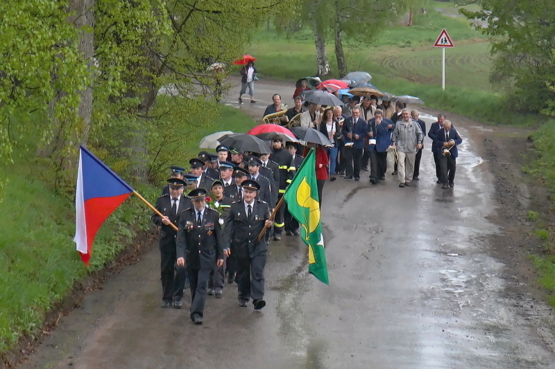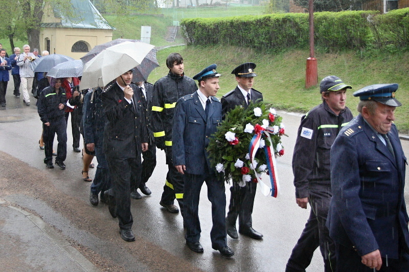 Dne 7.5.2013 jsme jako každoročně uctili památku padlých u pomníků v naší obci.Již při srazu všech účastníků u OÚ,jsme při pohledu na oblohu moc radostí neviděli.Při odchodu v 17'10hod.ještě jenom kapalo,ale při příchodu na křižovatku již lilo jako z konve a to prakticky až do konce oslav v 18'°° hodin.Mokrý jsme byli všichni až na kůži.Touto cestou bych chtěl poděkovat všem našim hasičům,že vydrželi.Chci poděkovat i naší dechovce která v tomto počasí také vydržela.Dík naší obsluze při občerstvení po oslavách v zázemí hřiště ZŠ.Nakonec díky pořadatelům,zastupitelstvu obce,našim hasičům a paní Medkové za výborný guláš.